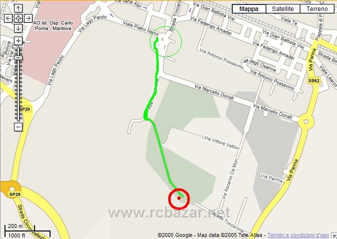 Ed il dettaglio, in verde, della strada per arrivare in pista.