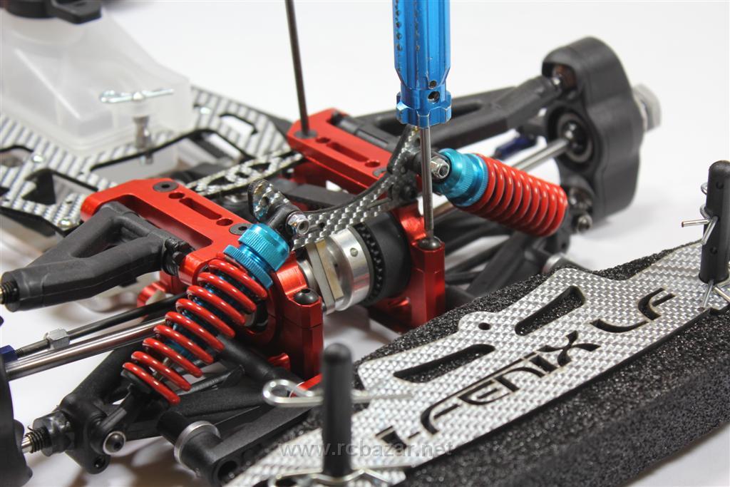| Anche all'anteriore, svitando solo 4 viti si accede al differeniale per una manutenzione senza pari per velocita' e facilita' di montaggio. Come anche al posteriore, le barre non si devono smontare e quindi la regolazione rimane fissa. Anche gli ammortizzatori restano nella loro sede. |